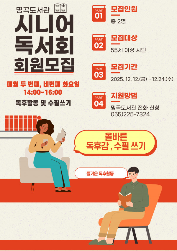 2026년 시니어독서회 신규회원 모집 안내