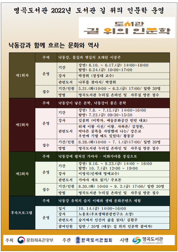 <명곡도서관> 길 위의 인문학 수강생 모집