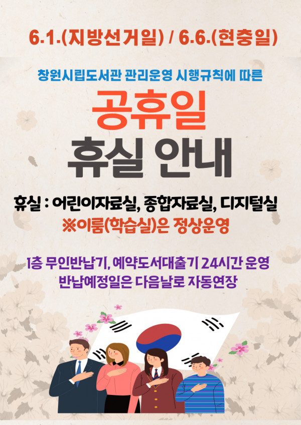 최윤덕도서관 공휴일(6.1./6.6.) 휴실 안내