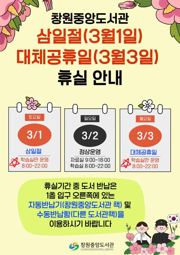 휴실안내(3/1(삼일절), 3/3(대체공휴일))