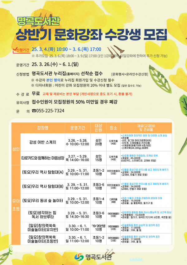 명곡도서관 2025년 상반기 문화강좌 수강생 모집 안내(25.3.4.~3.6.)