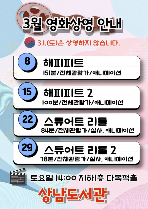상남도서관 3월 영화상영 안내