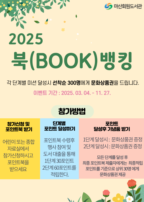 작성자 마산회원도서관 작성일25-02-26 13:01 조회3,925회 댓글0건첨부파일