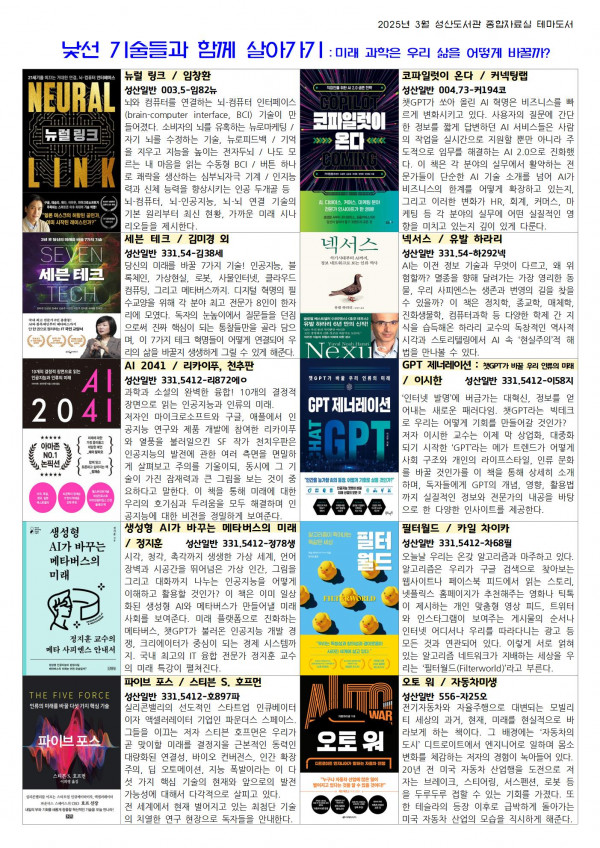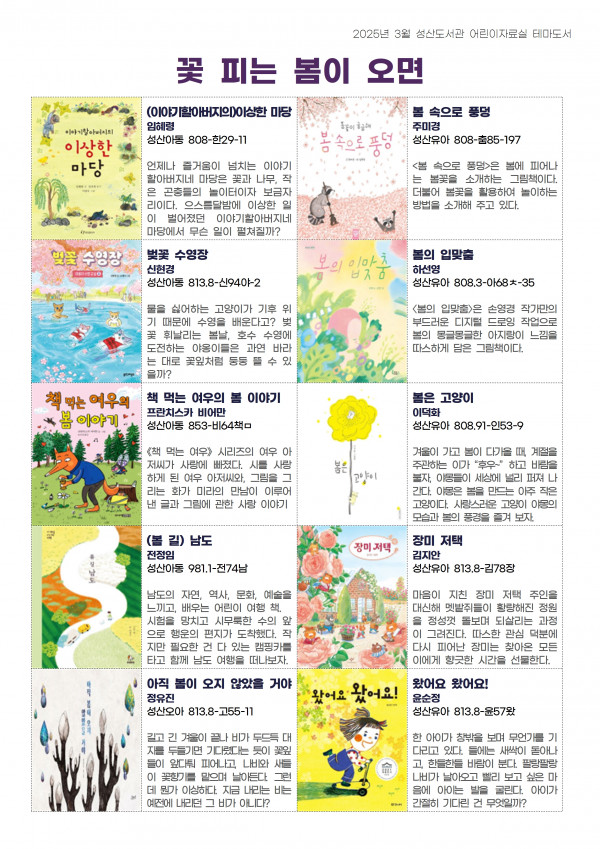 작성자 성산도서관 작성일25-02-27 17:32 조회3,217회 댓글0건첨부파일