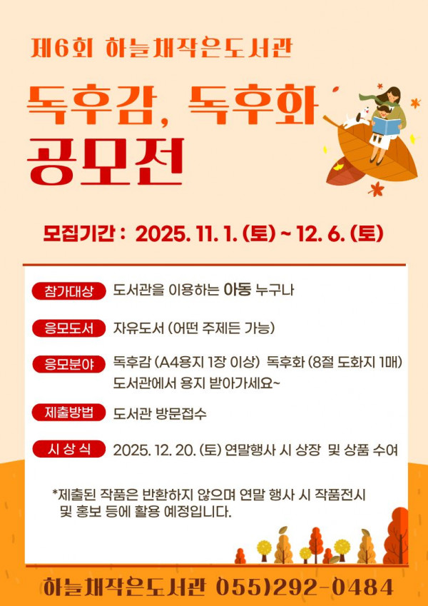 [마산회원구](하늘채작은도서관)제6회 독후감, 독후화 공모전 안내