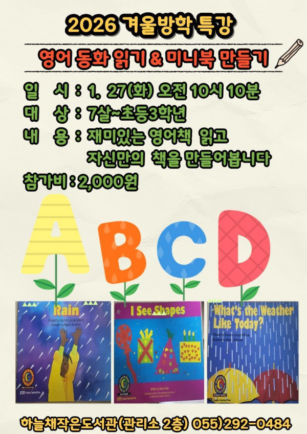 [마산회원구](하늘채작은도서관) 겨울방학 경제특강~ 영어동화읽기&미니북만들기