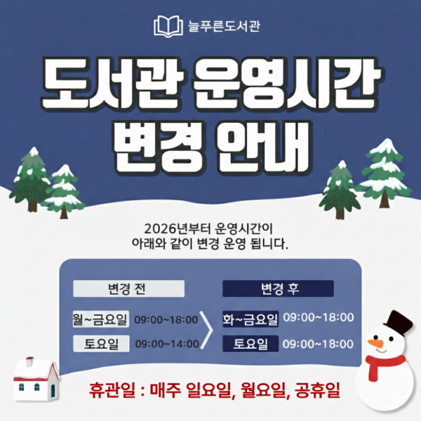 [성산구][늘푸른도서관][성산구](늘푸른도서관) 2026년 도서관 운영시간 변경 안내