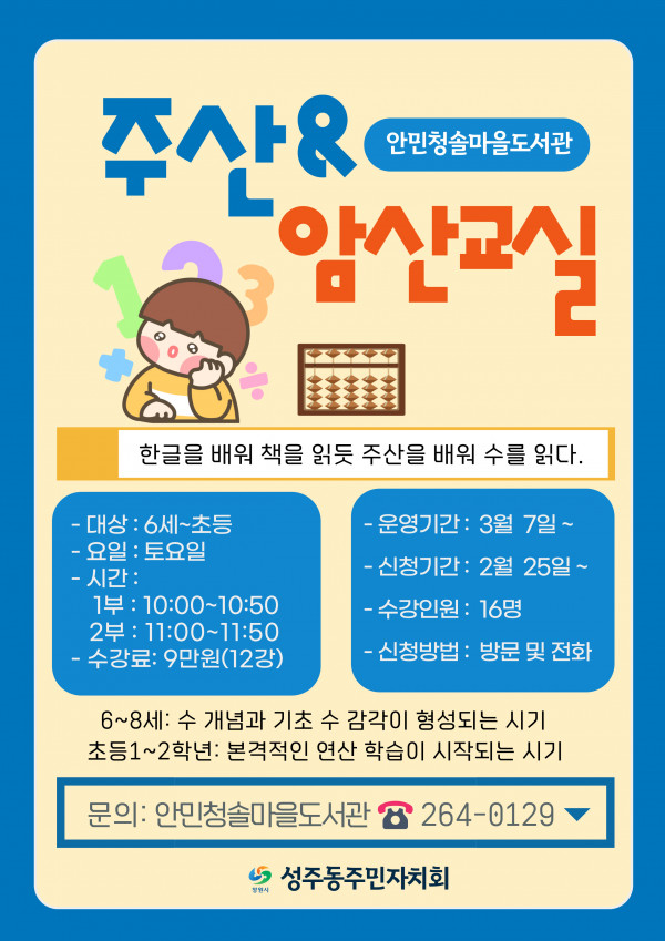 [성산구][안민청솔마을도서관][주산&암산교실] 수강생 모집