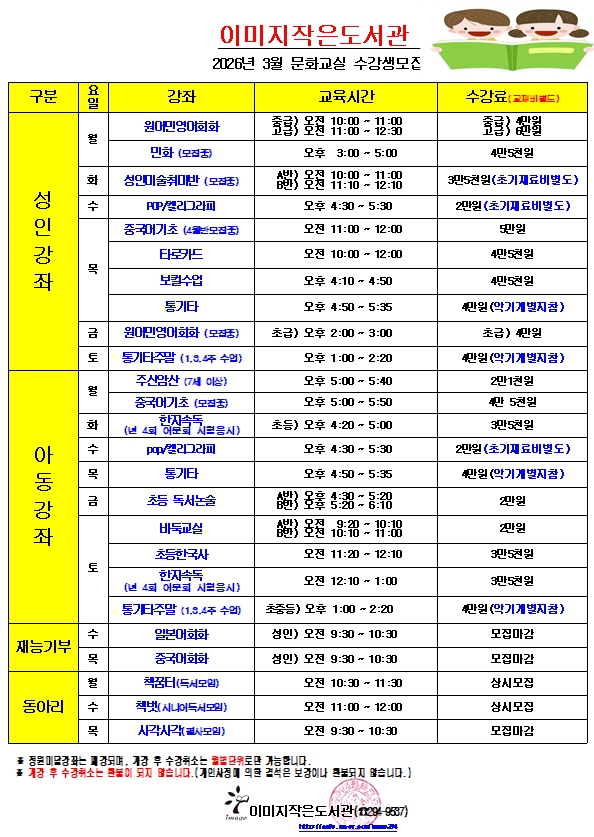 [마산회원구][이미지작은도서관]3월 문화교실 수강생모집안내