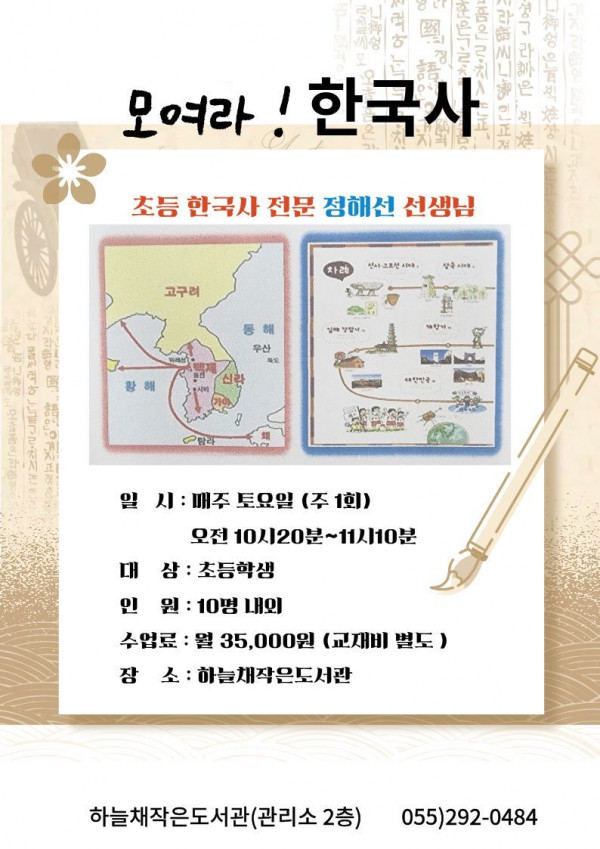 [마산회원구][하늘채작은도서관]한국사 수업 안내