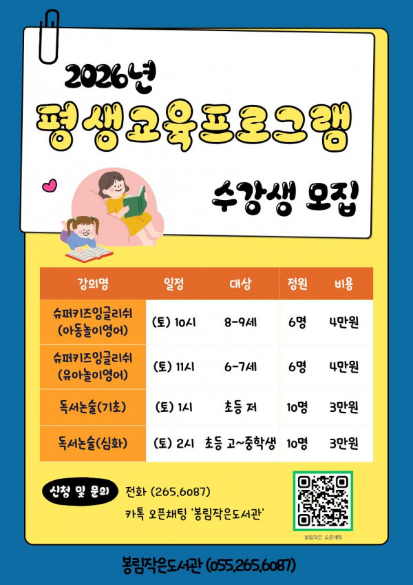 [의창구][봉림작은도서관][의창구] (봉림작은도서관) 평생교육프로그램 수강생 모집