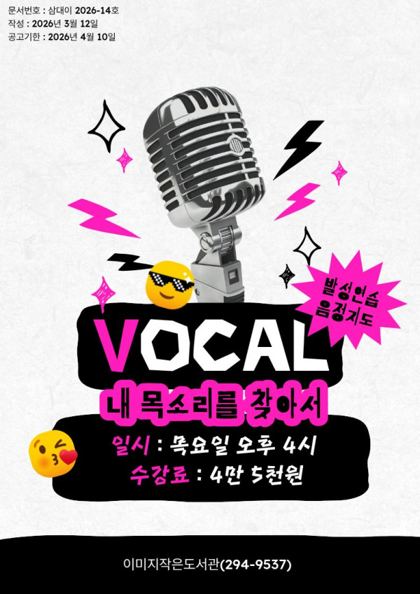 [마산회원구][이미지작은도서관]보컬레슨 수강생모집안내