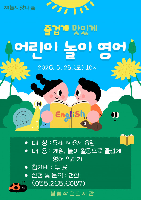 [의창구][봉림작은도서관]"즐겁게 맛있게 어린이 놀이 영어" 참가자 모집