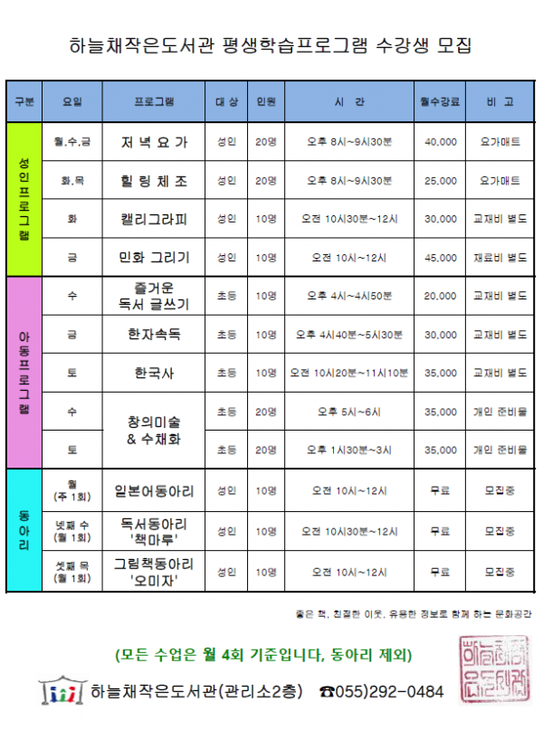 [마산회원구][하늘채작은도서관]4월 평생학습프로그램 수강생 모집 안내