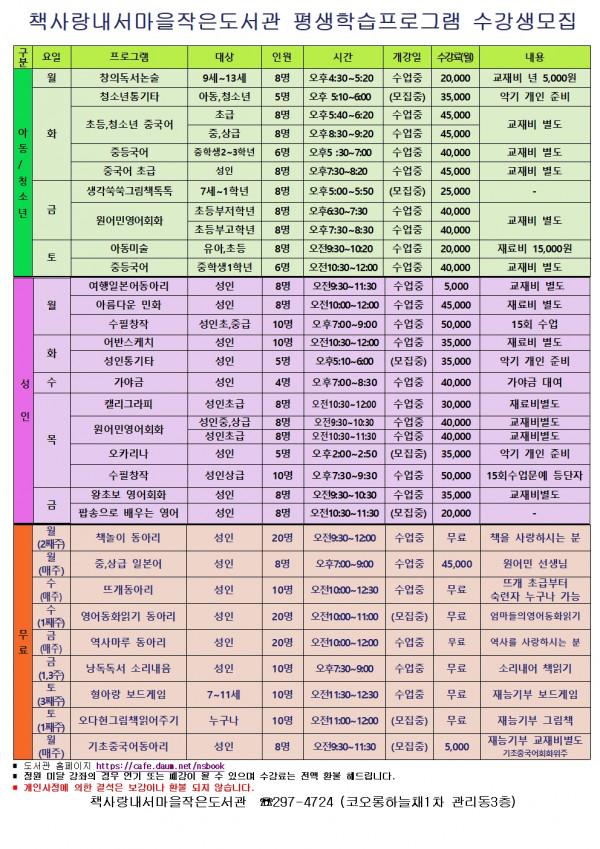 책사랑내서마을도서관 10춸 평생학습프로그램입니다