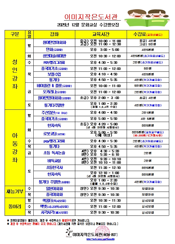 [마산회원구](이미지작은도서관) 12월 문화교실 수강생모집안내