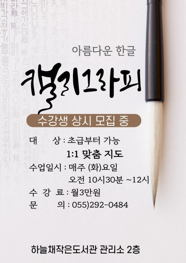 [마산회원구](하늘채작은도서관) 캘리그라피 수강생 모집 안내
