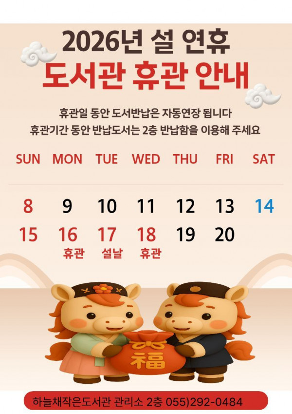 [마산회원구](하늘채작은도서관) 2월 도서관 휴관 안내