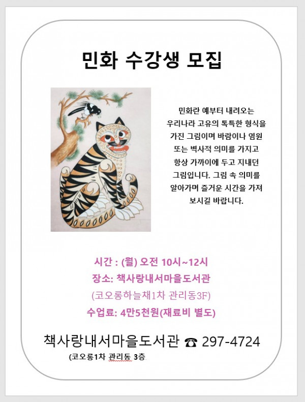 [마산회원구](책사랑내서마을도서관)-민화수강생모집