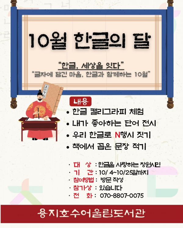 [성산구][용지호수어울림도서관]10월 '한글의 달'행사를 안내합니다