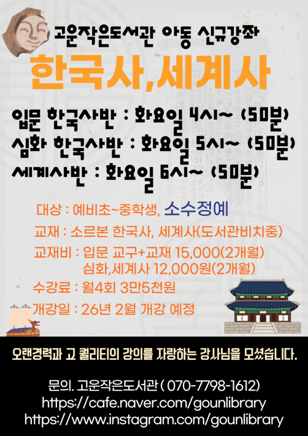 2026년 신규강좌 "한국사,세계사"를 소개합니다.