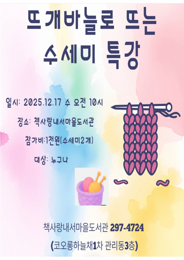 [마산회원구](책사랑내서마을도서관)-뜨개바늘로 뜨는 수세미특강