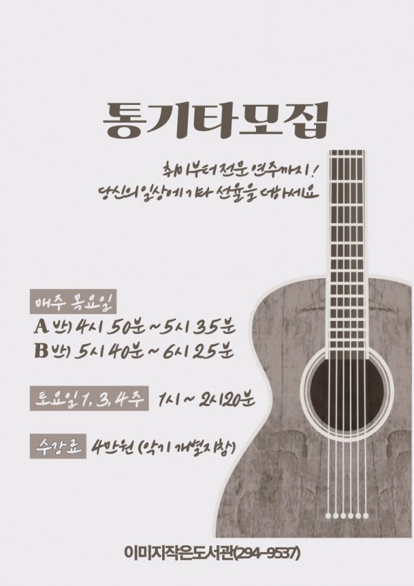 [마산회원구](이미지작은도서관) 통기타수강생 모집안내
